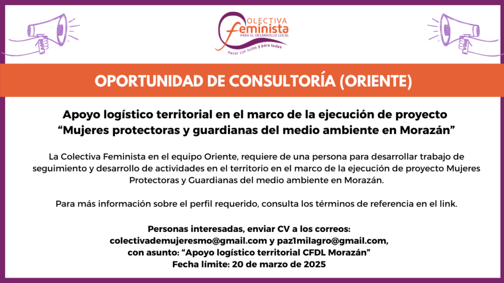 ANTECEDENTES DEL PROYECTOLa Colectiva Feminista para el Desarrollo Local (CFDL o La Colectiva) nace en el 2004 y en su PlanEstratégico Institucional 2022-2026 definió su Misión “Queremos ser autónomas, resilientes ycomprometidas con las transformaciones que impulsamos desde la acción colectiva feminista einterseccional, desafiando el sistema patriarcal desde nuestro cuerpo-territorio, aportandorebeldía con la esperanza de vivir […]
