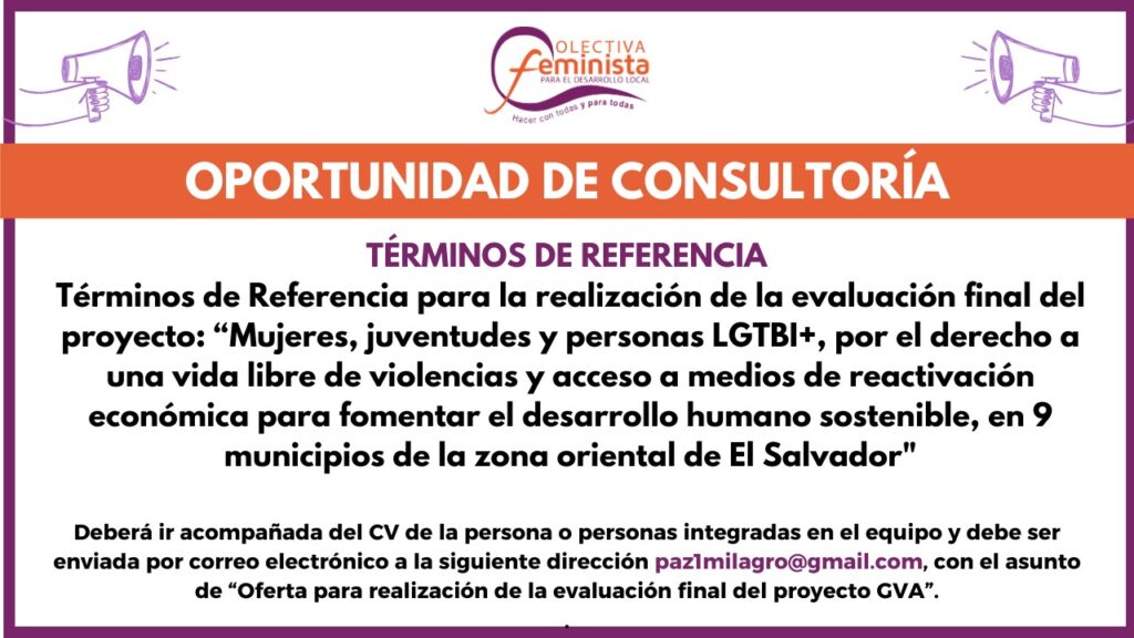 Términos de Referencia Evaluación externa de Proyecto: “Mujeres y población sexo-género disidente defendiendo el derecho a una vida libre de violencias machistas en dos departamentos de El Salvador”